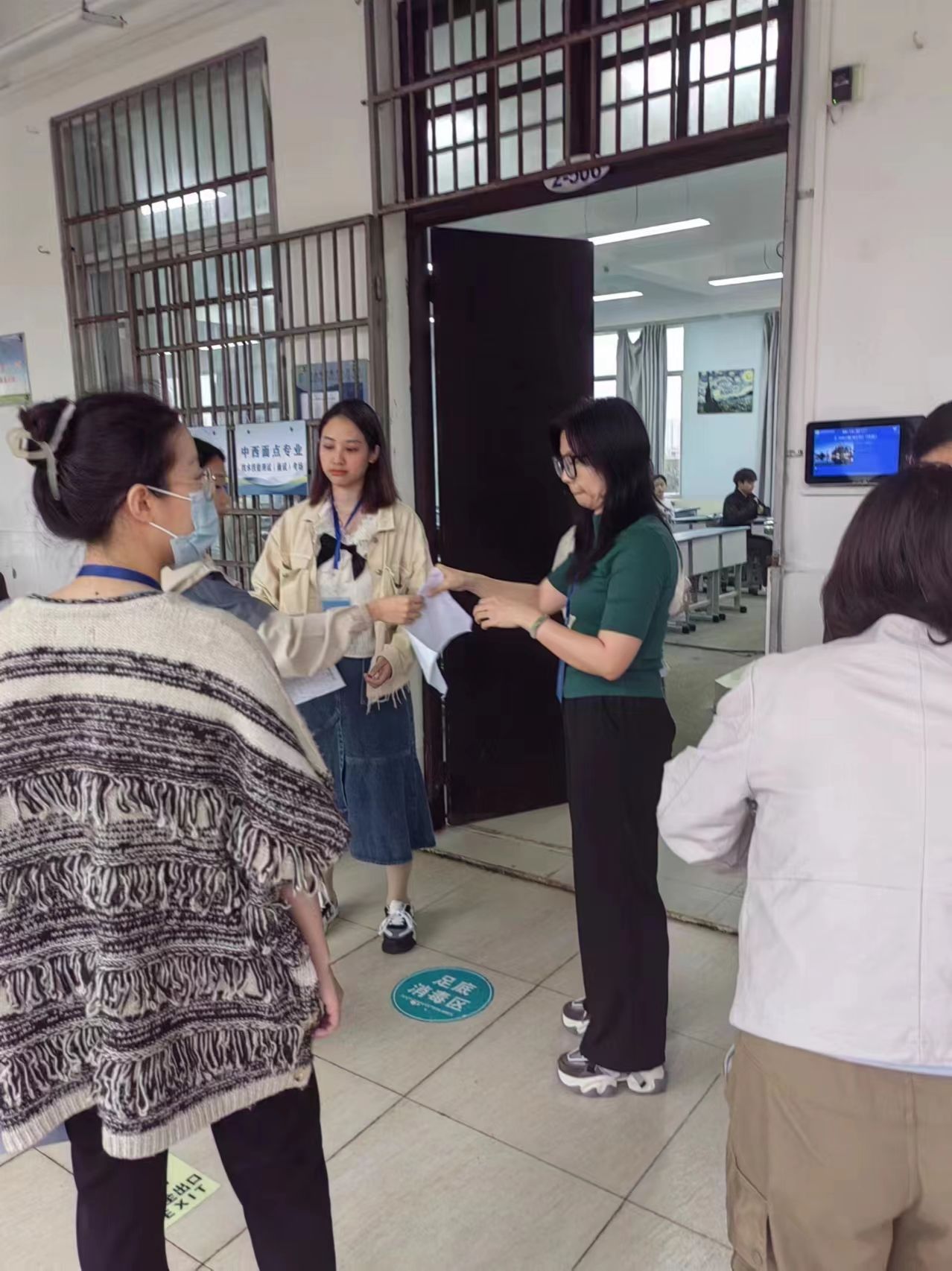 太阳成集团tyc122ccvip设置了考试咨询台,印制指示路标、导向指引、考生须知牌及横幅,精心布置每一个考场。此外,还组织了44名员工志愿者进行引导和服务。