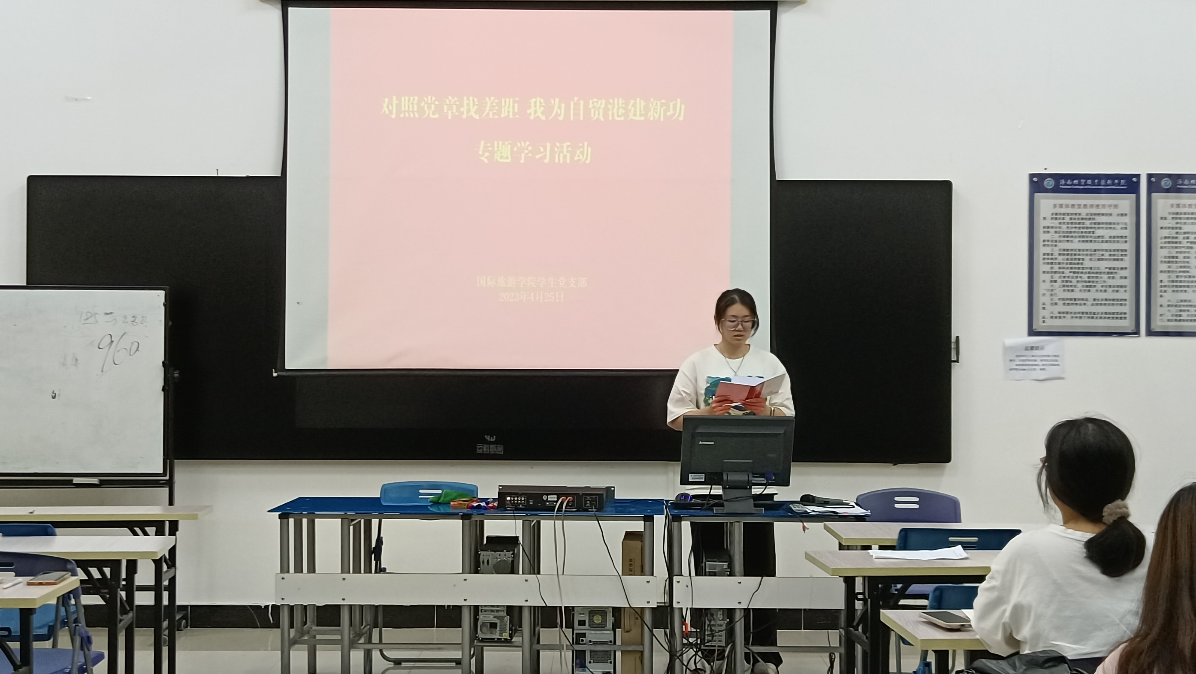 为深入学习贯彻习近平新时代中国特色社会主义思想,4月25日下午,太阳成集团tyc122ccvip员工党支部开展主题为“对照党章找差距 我为自贸港建新功”的专题学习活动,党总支书记孙金以及员工党支部在校员工党员、预备党员参与学习。