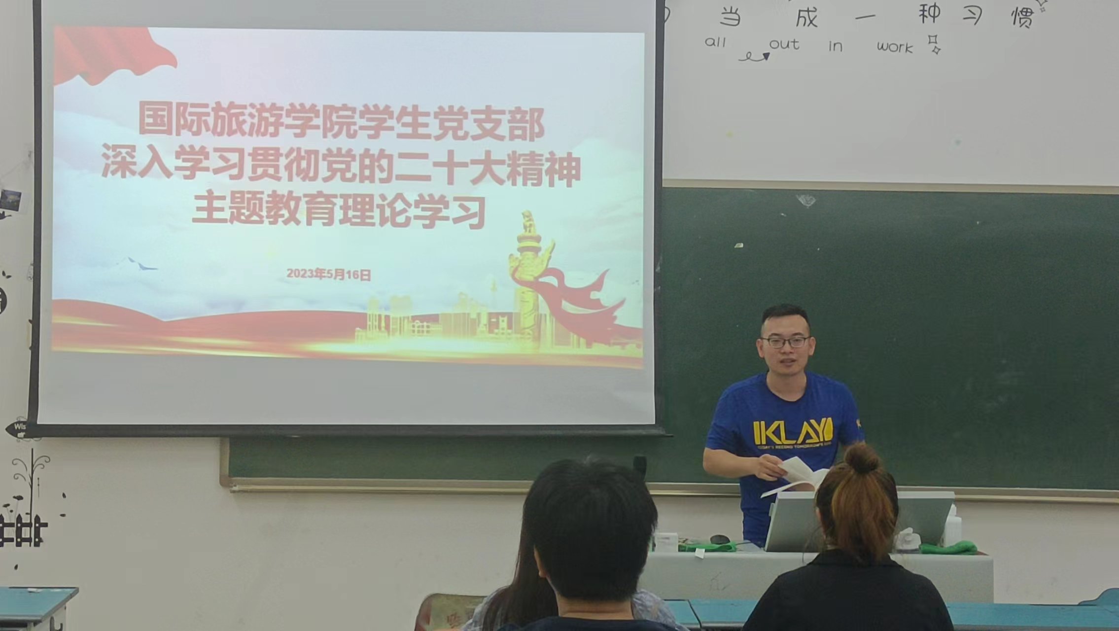 为持续深入学习贯彻党的二十大精神,5月16日下午,太阳成集团tyc122ccvip员工党支部第三次学习贯彻习近平新时代中国特色社会主义思想主题教育理论学习活动在2-205开展。党支部老师樊靖带领员工党支部在校员工党员、预备党员进行学习。