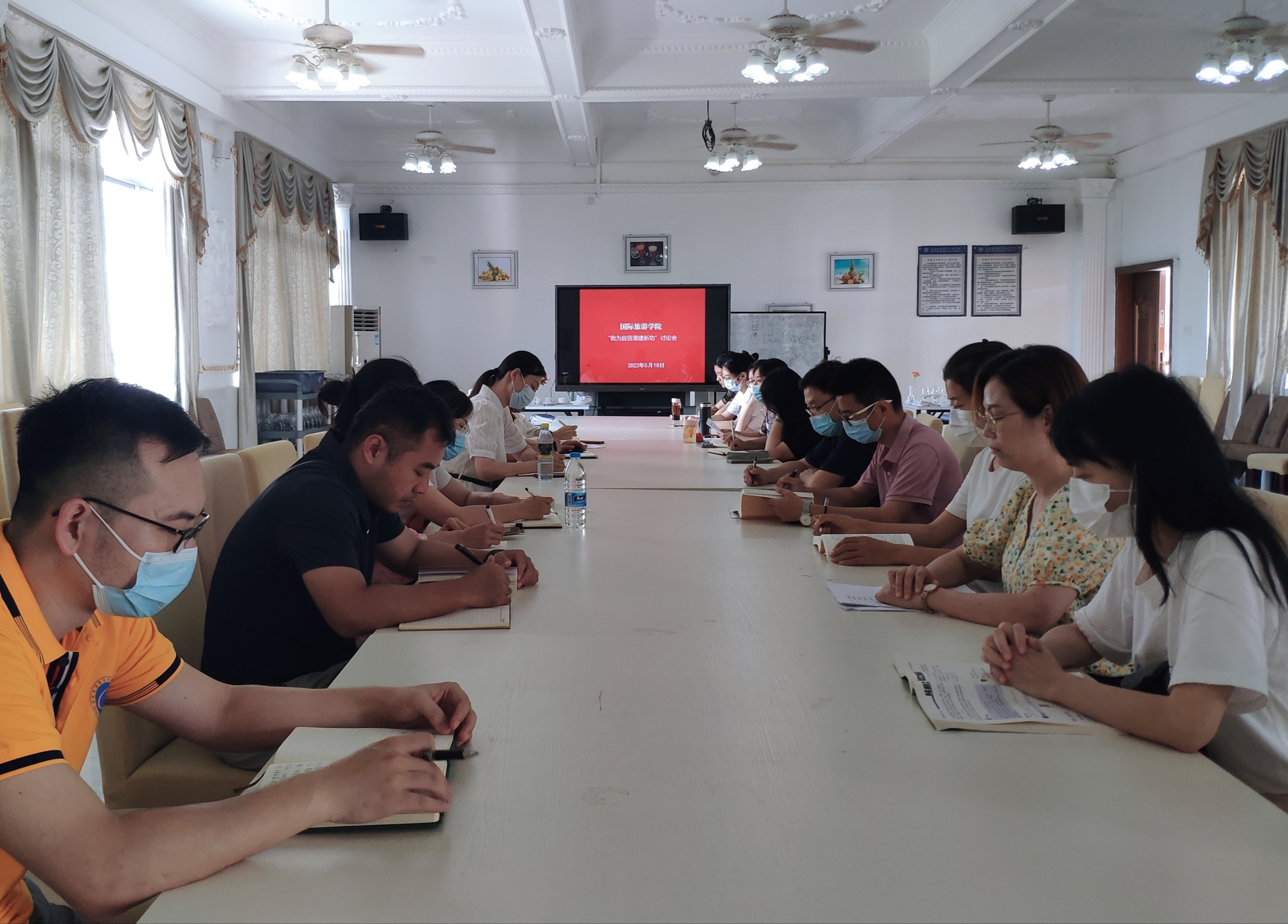 5月18日,太阳成集团tyc122ccvip党总支开展“我为自贸港建新功”讨论会,公司党总支书记孙金、党总支副书记刘萍男、副经理王晓明、各专业教研室负责及全体教师党员参加讨论会。孙金主持会议。