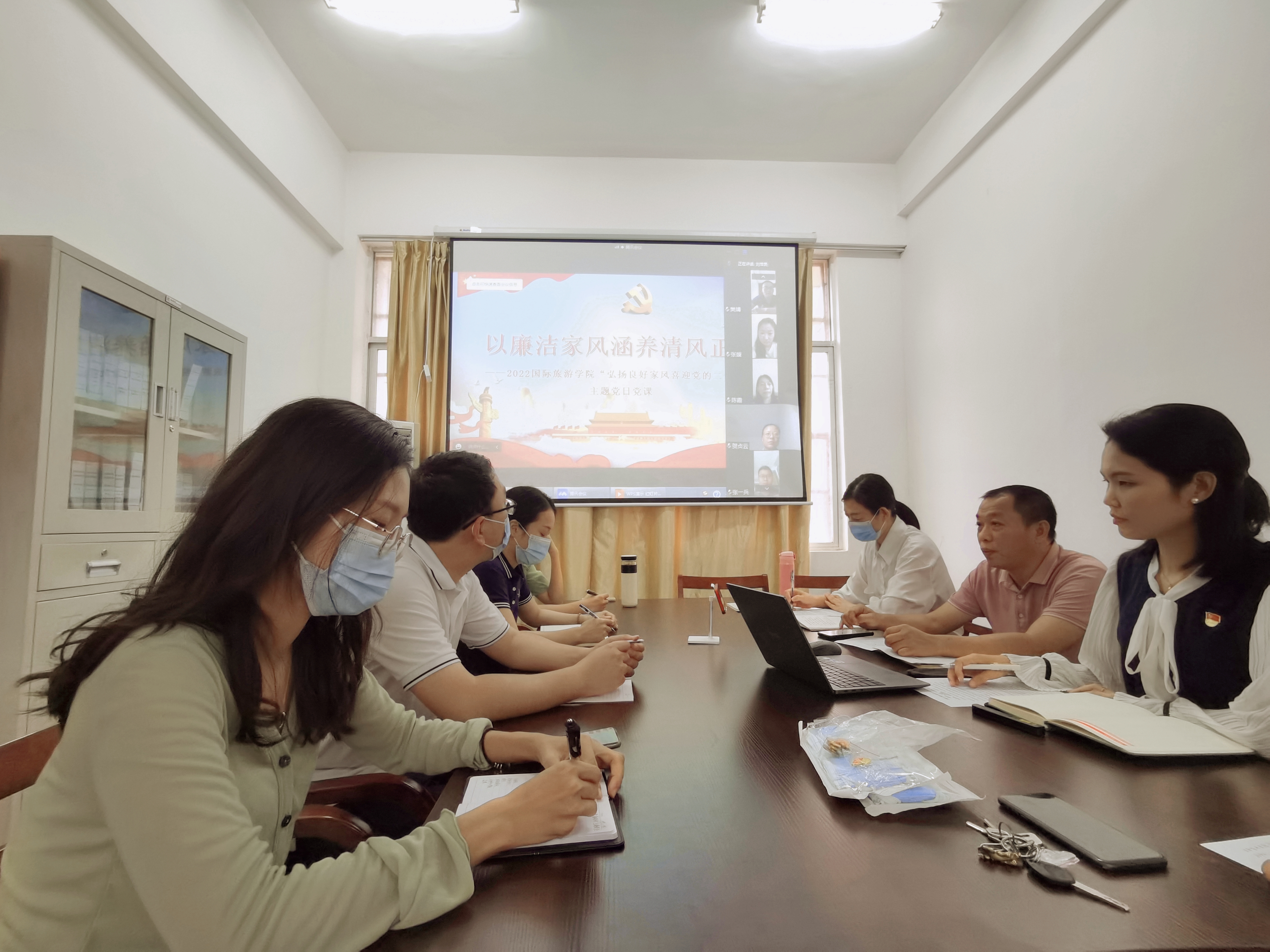 其次,孙金书记以“以廉洁家风涵养清风正气”为主题,从四个部分与全体教工党员分享:一是家风是什么;二是家风的新时代内涵和要求;三是家风的正反典型故事;四是新时代弘扬优良家风的实践要求。希望全体党员教师要自觉传承中华民族优秀传统家风,严守廉洁家训,继承良好家规,传递廉洁基因,以持之以恒的定力廉洁修身、廉洁齐家,不断涵养浩然正气,自觉远离贪欲之念,用自身修养和言传身教影响家属,共同建设廉洁家风。