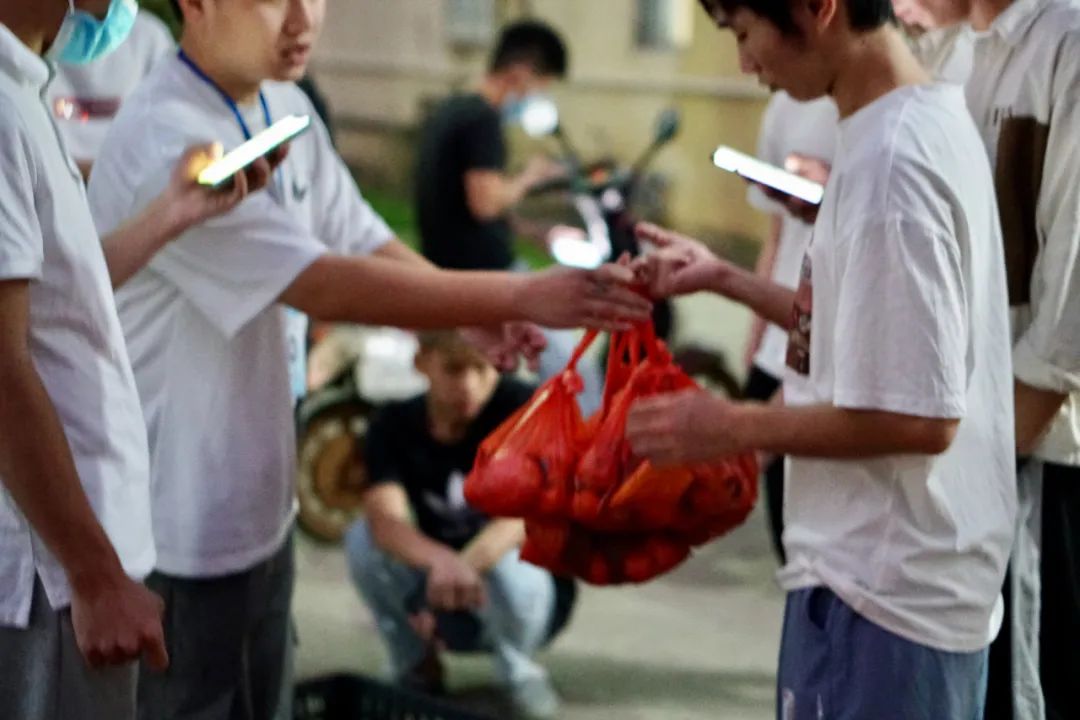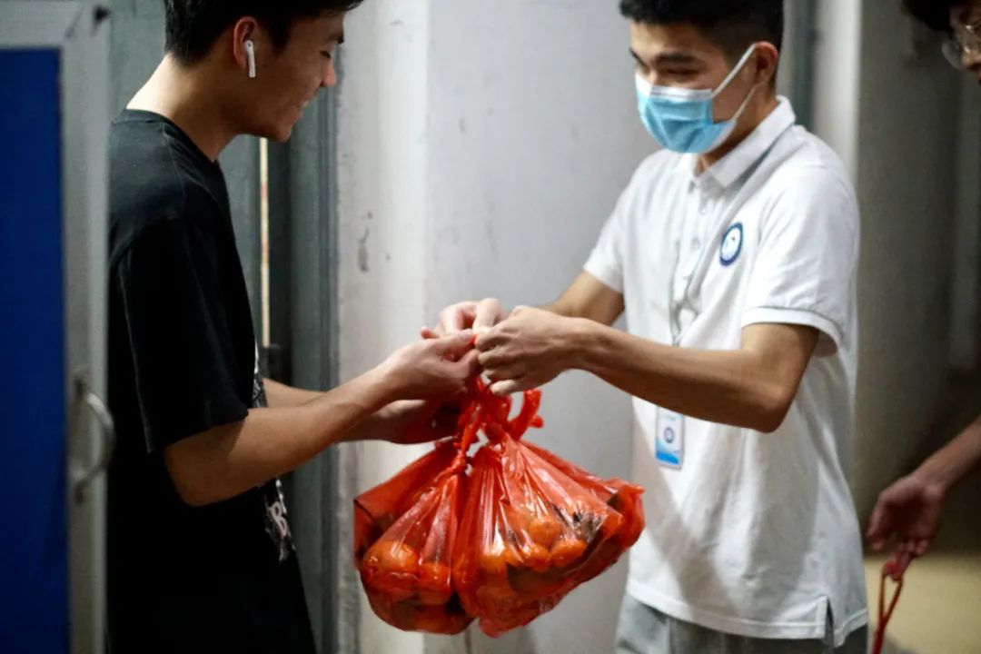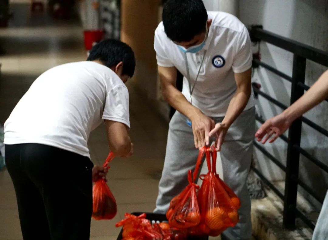校园闭环管理期间,公司在做好疫情防控的同时,时刻关注员工的身心健康。4月6日,员工代表座谈会上同学们反馈的水果贵、难买的问题,引起公司高度重视。4月7日晚,在公司学工部符绩彰部长的大力支持下,公司迅速行动,购置1056份爱心水果。在樊靖老师和公司志愿者的带领下,迅速将水果发放到员工手中。