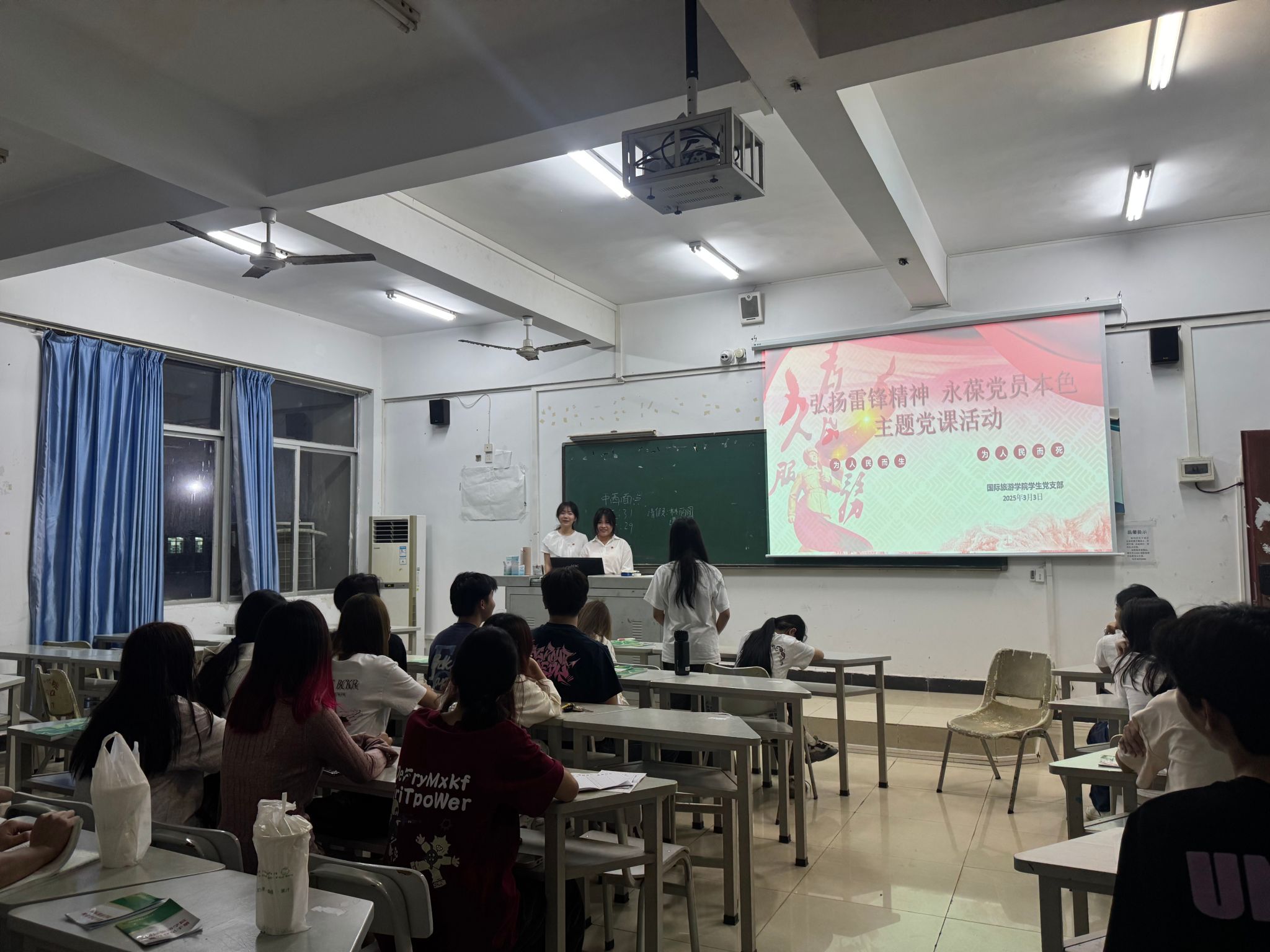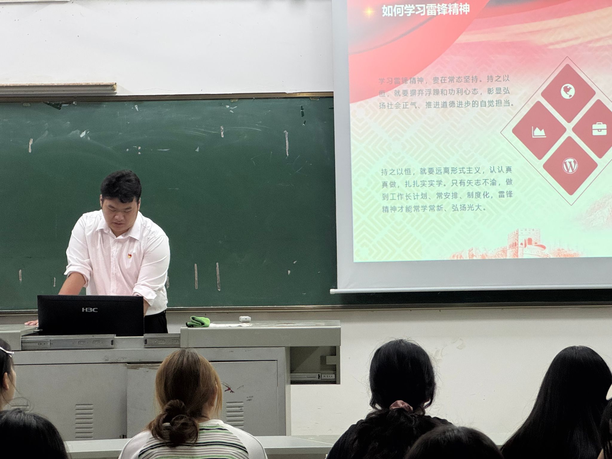 支部员工党员王川岛、麦惠玺、王小蕾走上讲台,为24级各班作“弘扬雷锋精神 永葆党员本色”主题宣讲,重温雷锋故事,弘扬雷锋精神。