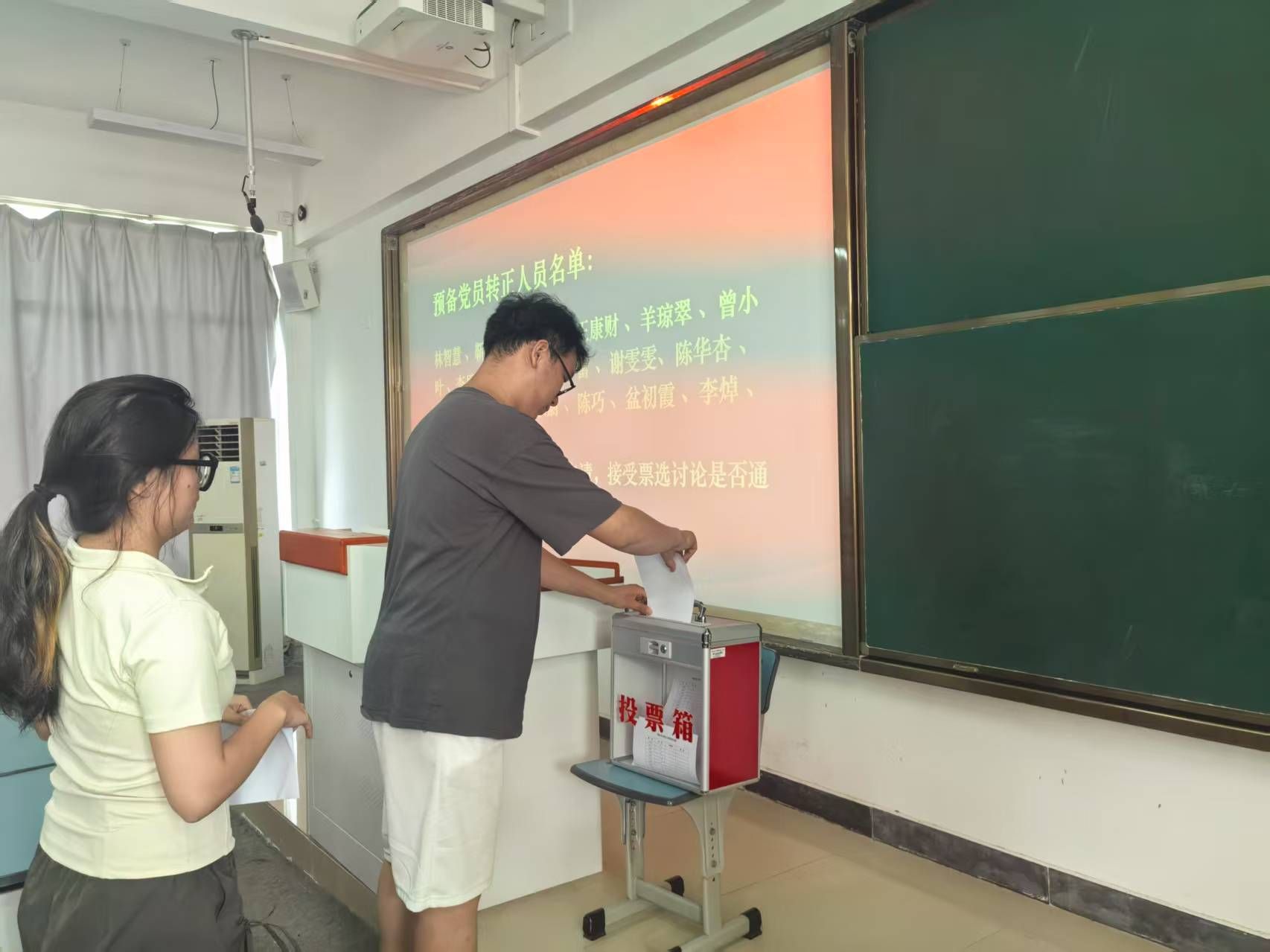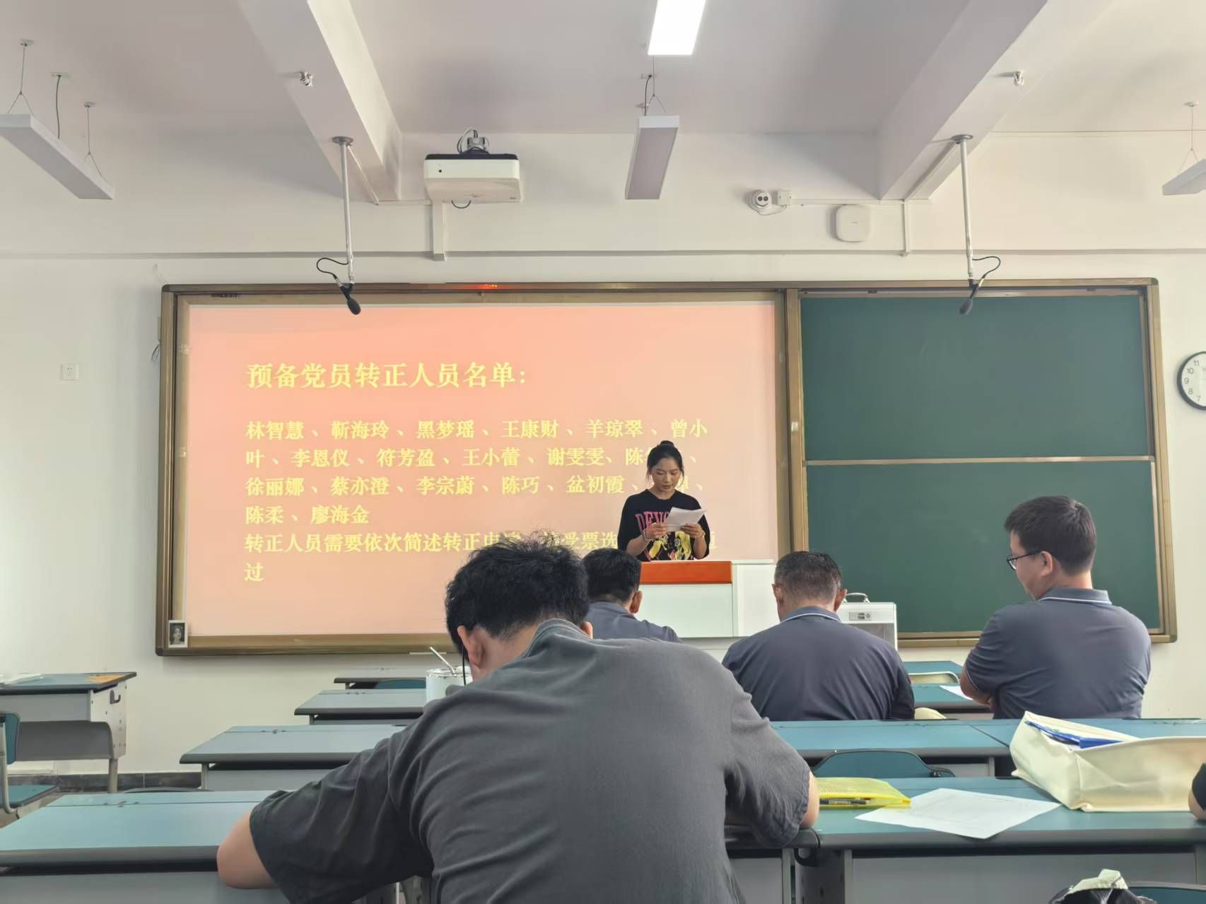 2025年6月18日上午,太阳成集团tyc122ccvip员工党支部于2教506召开预备党员转正大会,会议讨论林智慧等十九位预备党员转正事宜。会议由员工党支部书记李越主持,大会应到正式党员40名,实到28名,符合会议召开条件。