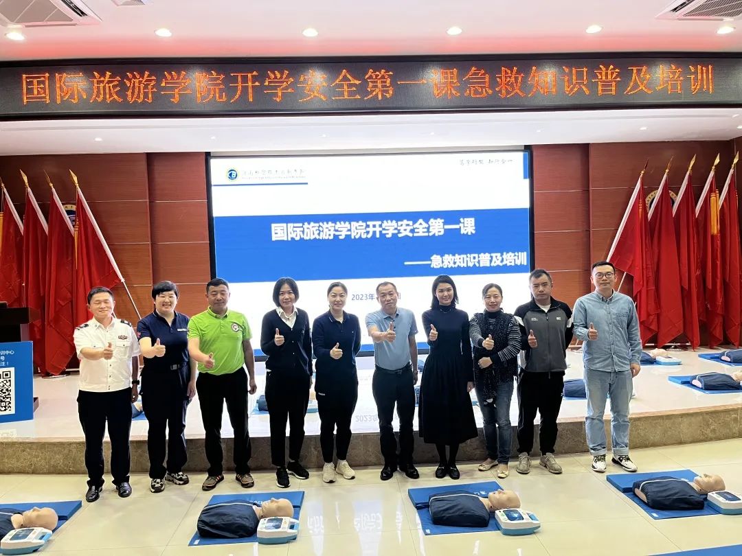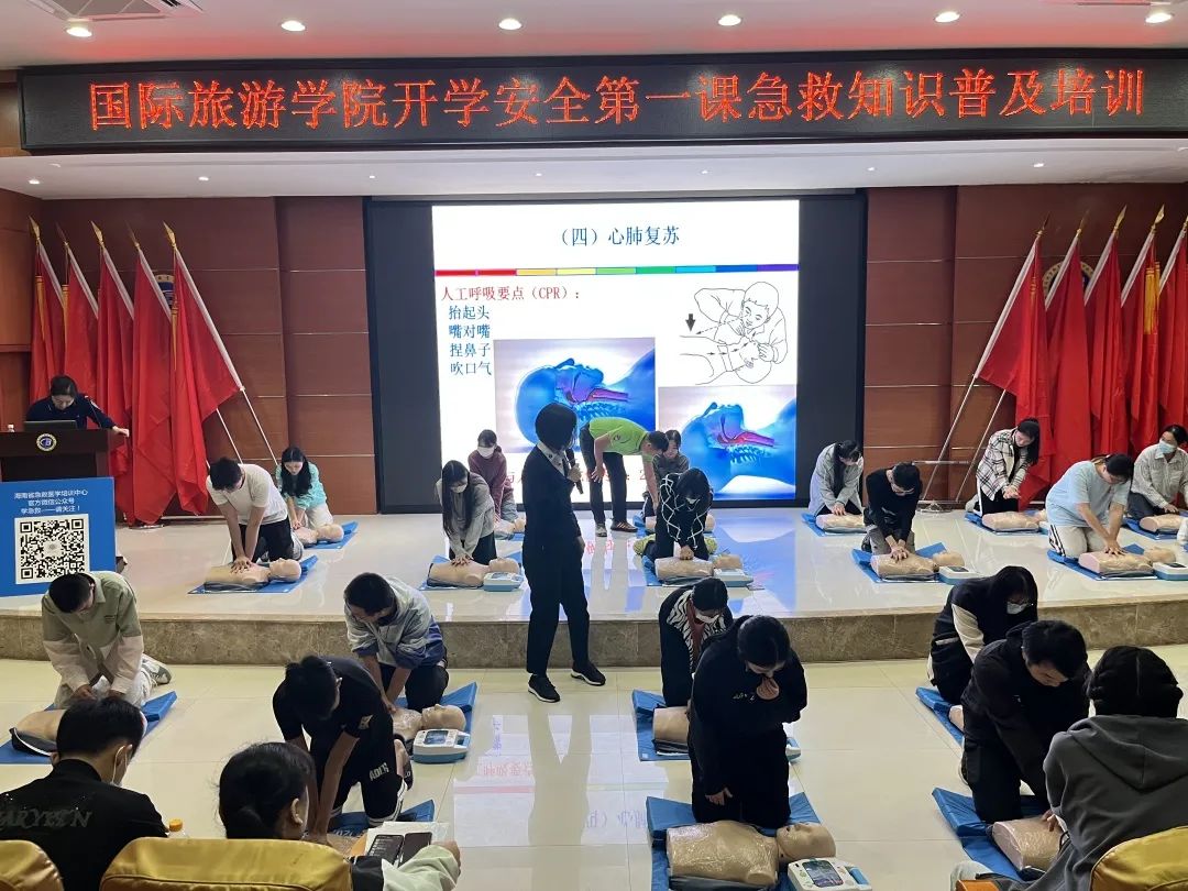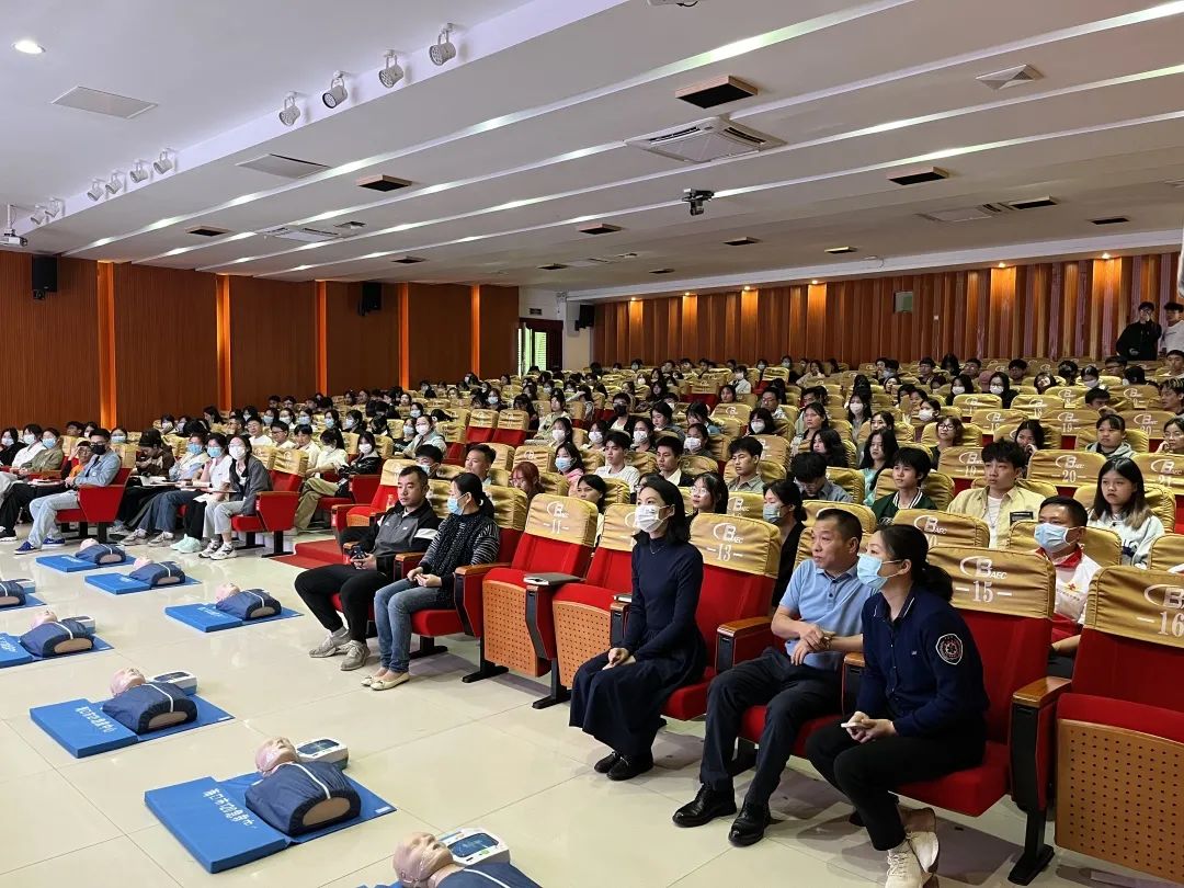 2023年2月28日下午,太阳成集团tyc122ccvip邀请海口市120急救中心为公司师生开展《开学安全第一课》。作为公司“开学第一课”系列教育活动之一,本次急救知识培训会以提高员工自救互救能力和生命健康安全意识为目标,进一步推动急救知识进校园行动。公司党总支书记孙金、副书记刘萍男、学工办主任符珍、辅导员陈俊池及公司300名在校员工参加培训会。培训会由樊靖主持。