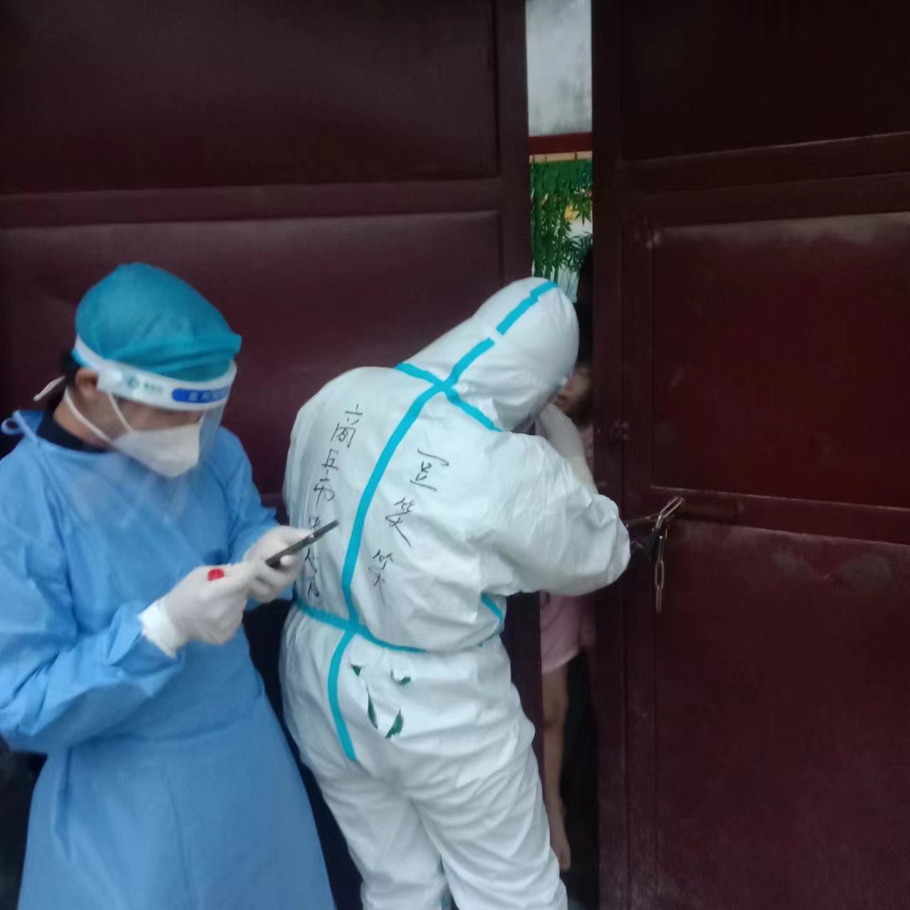 8月5号的凌晨,他乘车前往20多公里外的三亚市实验小学区域展开志愿者服务,负责信息采集和核酸采样工作。第一次穿上防护服时,他说:“感觉一股热气从下往上冲,最后热气将全身包裹的时候,我才明白了一线工作者是多么的不容易。”8月10日晚十点,刚吃完晚饭的他,在向辅导员报备了近期行程后,顶着夜色再一次踏上了上门核酸采样的路。