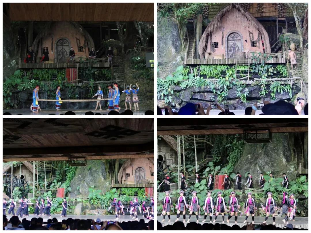 随后,大型原生态黎苗文化实景演出《槟榔·古韵》,以钻木取火、织黎锦、帕曼情歌、苗捏、舂米、黎族服饰、打柴舞等节目表演,展示海南原始、古老的黎苗文化底蕴。