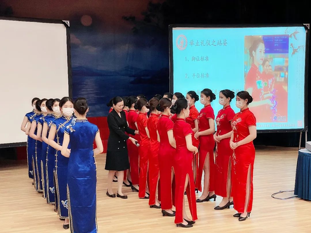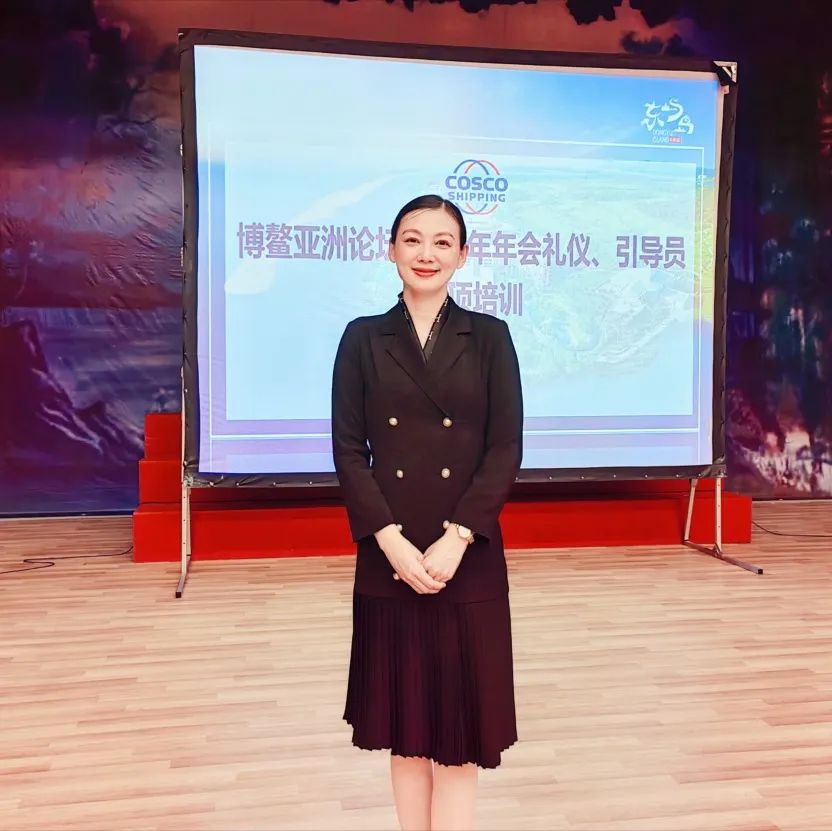 王晓明副教授既是公司的副经理也是教工党支部的书记。这是她服务年会礼仪培训的第九个年头。“现场讲解、情景模拟、全要素实战演练”,突出仪容、礼节、走姿、接待服务流程等是她礼仪培训的重点内容。针对今年公司博鳌志愿服务活动的成果,她总结到,“博鳌师生志愿服务先锋队是公司教工党支部“全国党建工作样板支部”重点培育项目,通过公司党员师生志愿服务联动,引导青年主动靠前寻需求、主动做服务,切实提升青年员工志愿者志愿服务业务能力。”