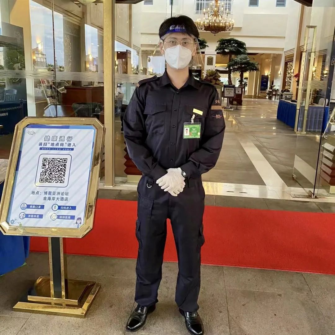 21级旅游管理本科1班的李博东,是博鳌金海岸酒店安保部门的一名志愿者。他是班级团支书,也是一名退伍军人,这是他第二次参加博鳌志愿服务。2021年第一次来博鳌亚洲论坛年会时,他还是一名武警军人,从事年会外围的安全维稳工作。“我是一名退伍军人,退伍不褪色!这是我第二次从事年会志愿服务活动,体验两种截然不同角色。在置身志愿服务活动中后,我尊重志愿者,并且深感我们工作的纯粹。”安保服务工作是博鳌志愿服务的第一线。维护现场秩序、控制人流进入、核验人员身份,并为参会人员提供耐心指引,都是安保服务志愿者们的重要工作。一直在年会外围工作的他,随着志愿服务的深入,越来越觉得自己所从事的领域工作很重要。