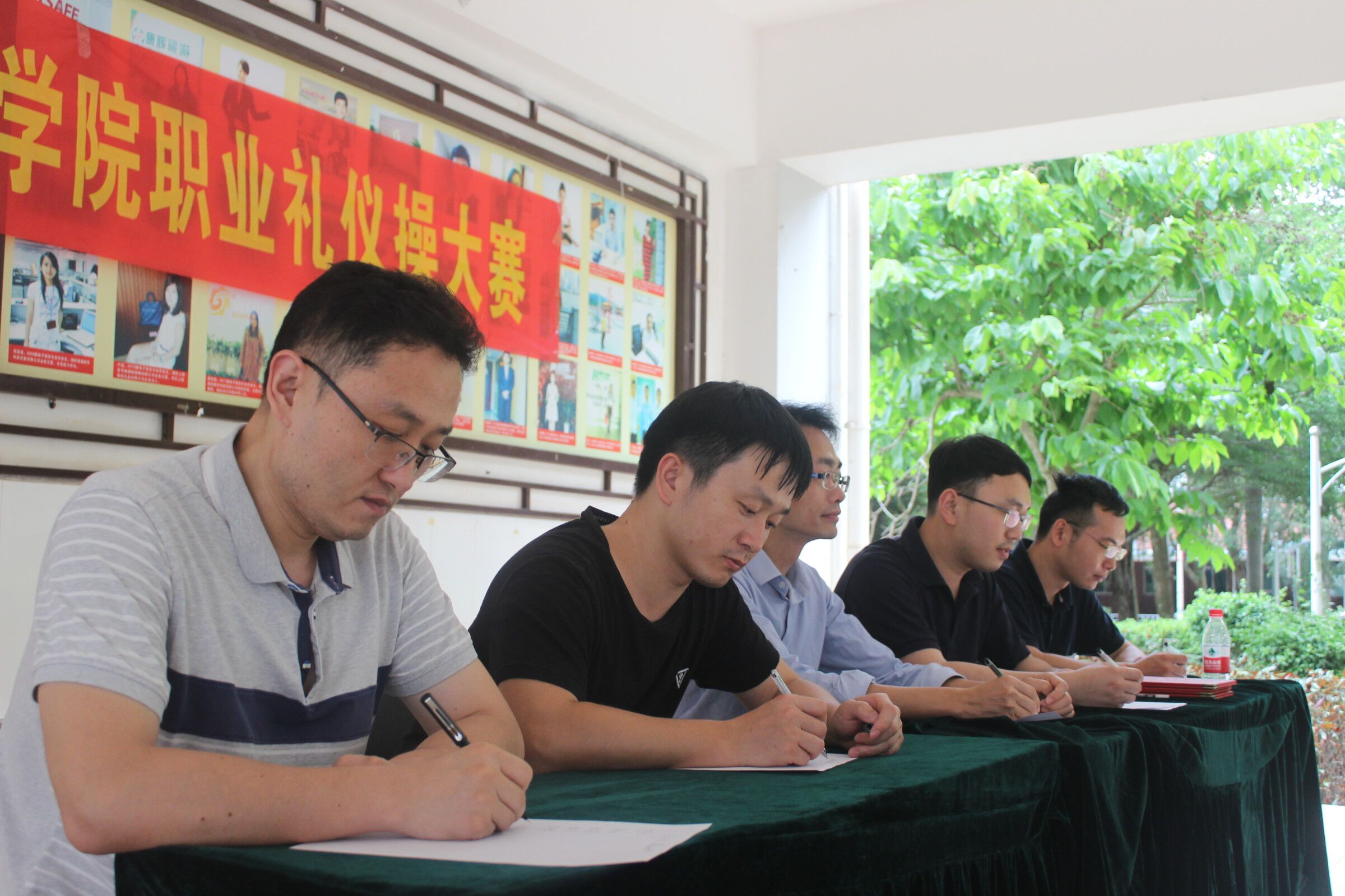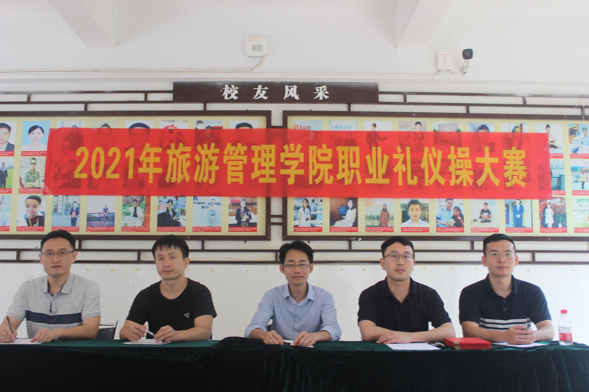 为进一步强化员工文明礼仪规范,培养员工文明,团结协作的集体荣誉感,展示旅游管理公司学子礼仪规范,展现良好的精神风貌,2021年4月18日,旅游管理公司举办了“献礼建党百周年,职业礼仪展风姿”礼仪操大赛,本次活动的评委有旅游管理公司班主任代表王荣,吴晓亮,程傲,辅导员樊靖,张强。