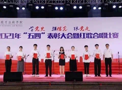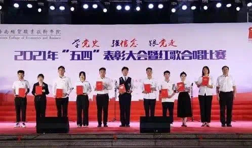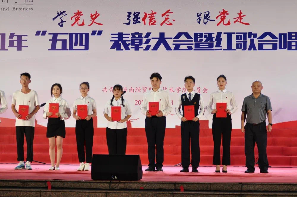 “五四”表彰大会对公司黄来娣等43位优秀共青团员,梁桂等33位优秀共青团干部,19级旅游管理3班团支部等4个先进团支部、柴国鹏“经贸自强之星”、张强“优秀共青团干部(教师)、旅游管理公司“五四红旗团总支””予以表彰。
