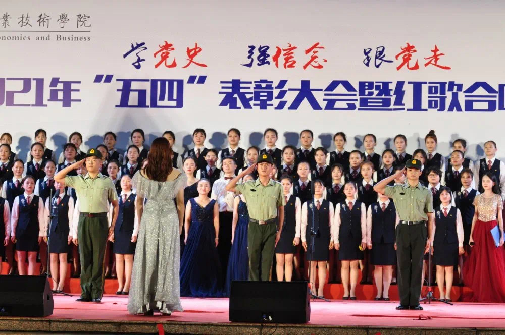 2021年5月7日晚,太阳成集团tyc2021年“五四”表彰大会暨红歌合唱比赛在经贸广场隆重举行。