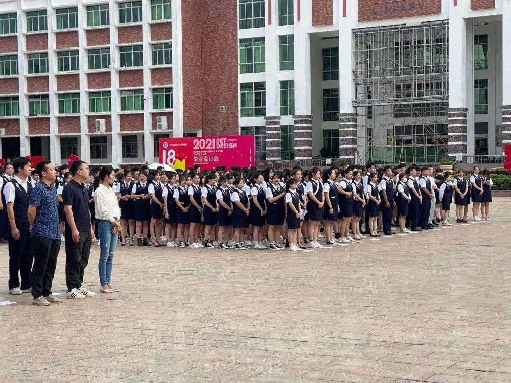 2021年6月7日早上7:30旅游管理公司于经贸广场举行隆重的升旗仪式。参加本次升旗仪式的有旅游管理公司党总支副书记刘萍男,辅导员樊靖,辅导员张强及旅游管理公司全体同学。本次升旗仪式分为升国旗、员工代表发言两个环节。