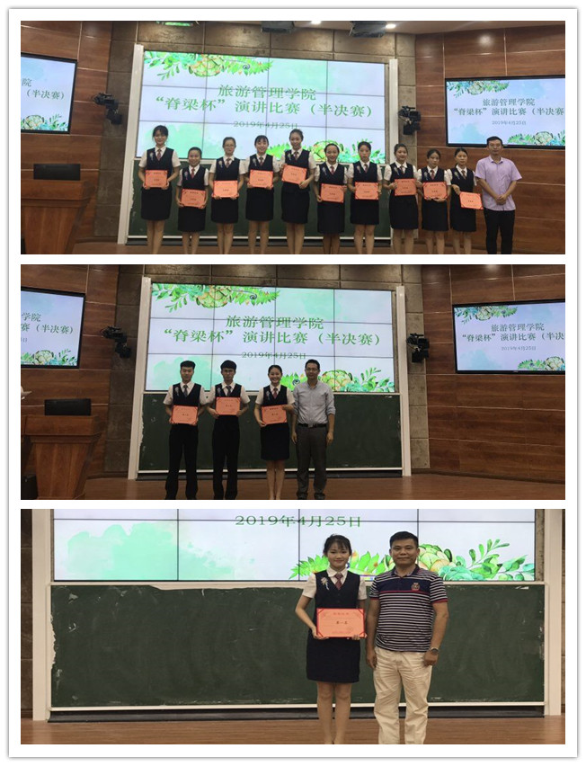 4月25日晚上19:00,公司在2-215多媒体教室举行了“脊梁杯”主题演讲比赛半决赛。经过班级初赛的选拔,共有16位选手进入到本次公司的半决赛中。担任本次半决赛的评委分别是旅游管理公司党总支符胜书记、学工办主任刘萍男老师、18级旅游管理一、二班班主任蔡家瑶老师、17旅三班班主任蓝祖庆老师以及辅导员樊靖老师。