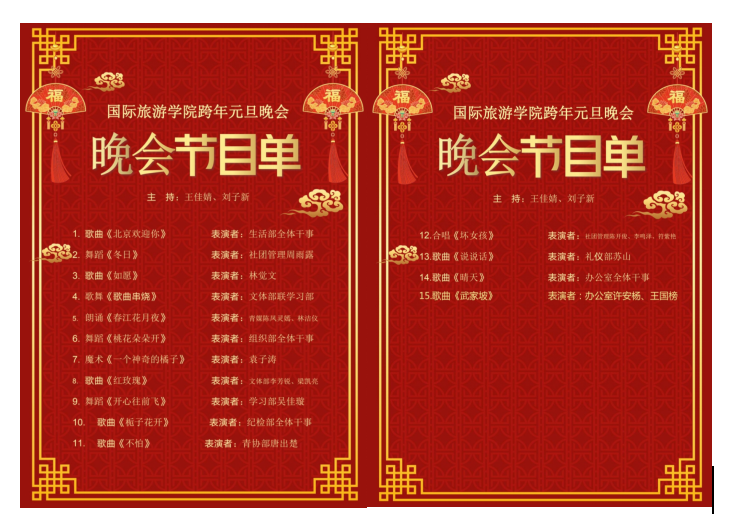 “四气新元旦,万寿初今朝”。2023年在欢声笑语中即将离去,2024年的欢歌在耳边缓缓响起。太阳成集团tyc122ccvip员工会于2023年12月22日晚上在3教101举行了跨年元旦晚会,本次活动由王佳婧、刘子新主持,全体员工会成员参加。