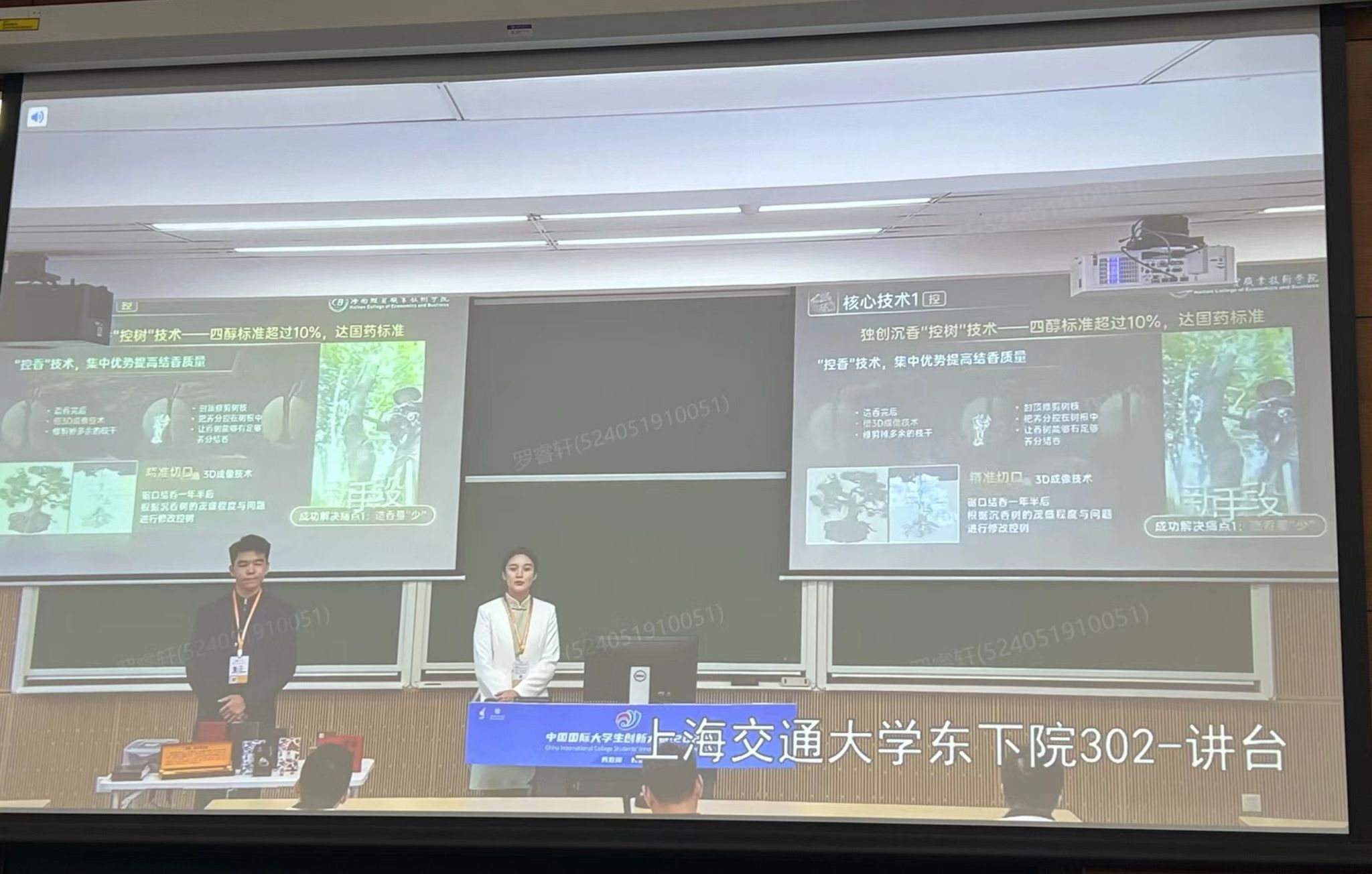 “‘香’村振兴——可持续生态沉香采造技术创导者”项目针对沉香产业中存在的三大问题:造香量少、取香方式落后导致结香质量差,提出了创新解决方案。通过研发综合可持续循环的锯口切面微波辅助造香技术,有效提升了沉香的产量和品质。他们设计了“开箱门”工艺,通过精准操作辅助取香,减少了对沉香树的损伤,提高了取香效率;“控树”技术可以利用3D成像技术对沉香树进行精确管理,进一步提升结香质量。这三大技术的创新不仅解决了沉香产业的痛点,也为实施乡村振兴战略提供强有力的技术支撑。该项目最终获得金奖,实现海南高校在该赛道金奖“零的突破”。