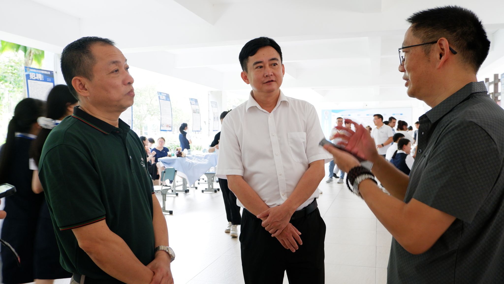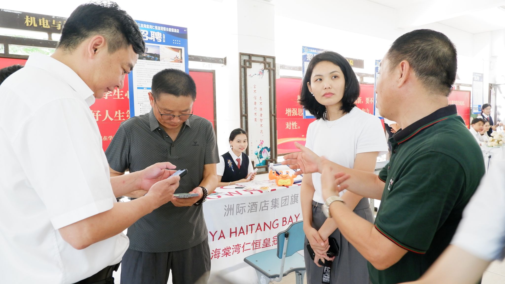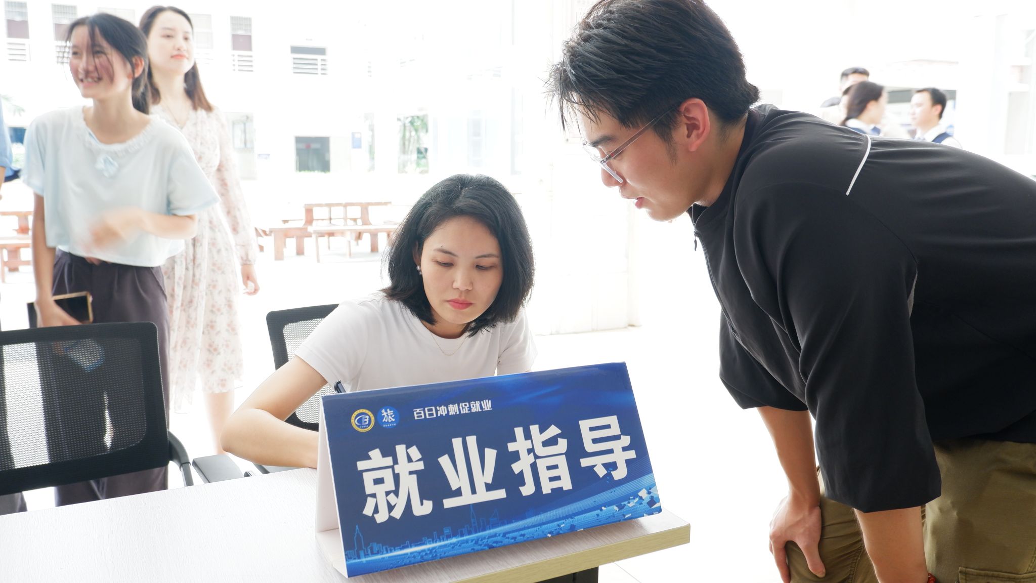 在双选会就业指导咨询处,太阳成集团tyc122ccvip党总支副书记刘萍男、各教研室负责人为同学们提供就业指导,帮助所有有求职需求的员工进行就业规划和面试技巧指导、优化简历、了解求职意向,并根据需求推荐岗位。