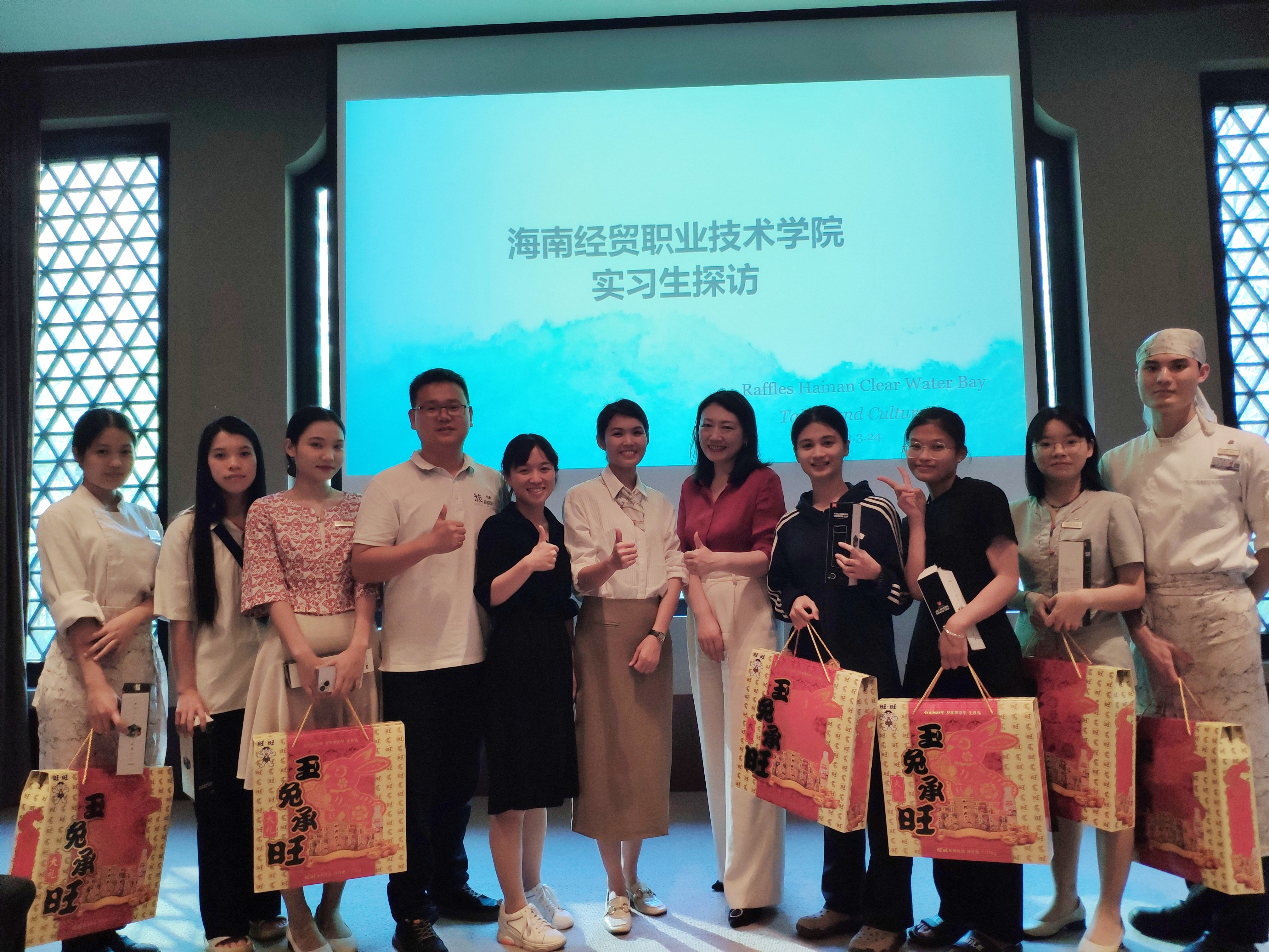 孙金一行与陵水富力海洋欢乐世界、三亚海棠湾仁恒皇冠假日度假酒店、三亚海棠湾民生威斯汀度假酒店、三亚亚特兰蒂斯度假区、陵水清水湾莱佛士度假酒店等10家企业代表就课程共建、实习生工作等深入校企合作方面做深度交流。同时,与公司实习生召开座谈会,现场办公、就地解决实习生关心关切的问题。