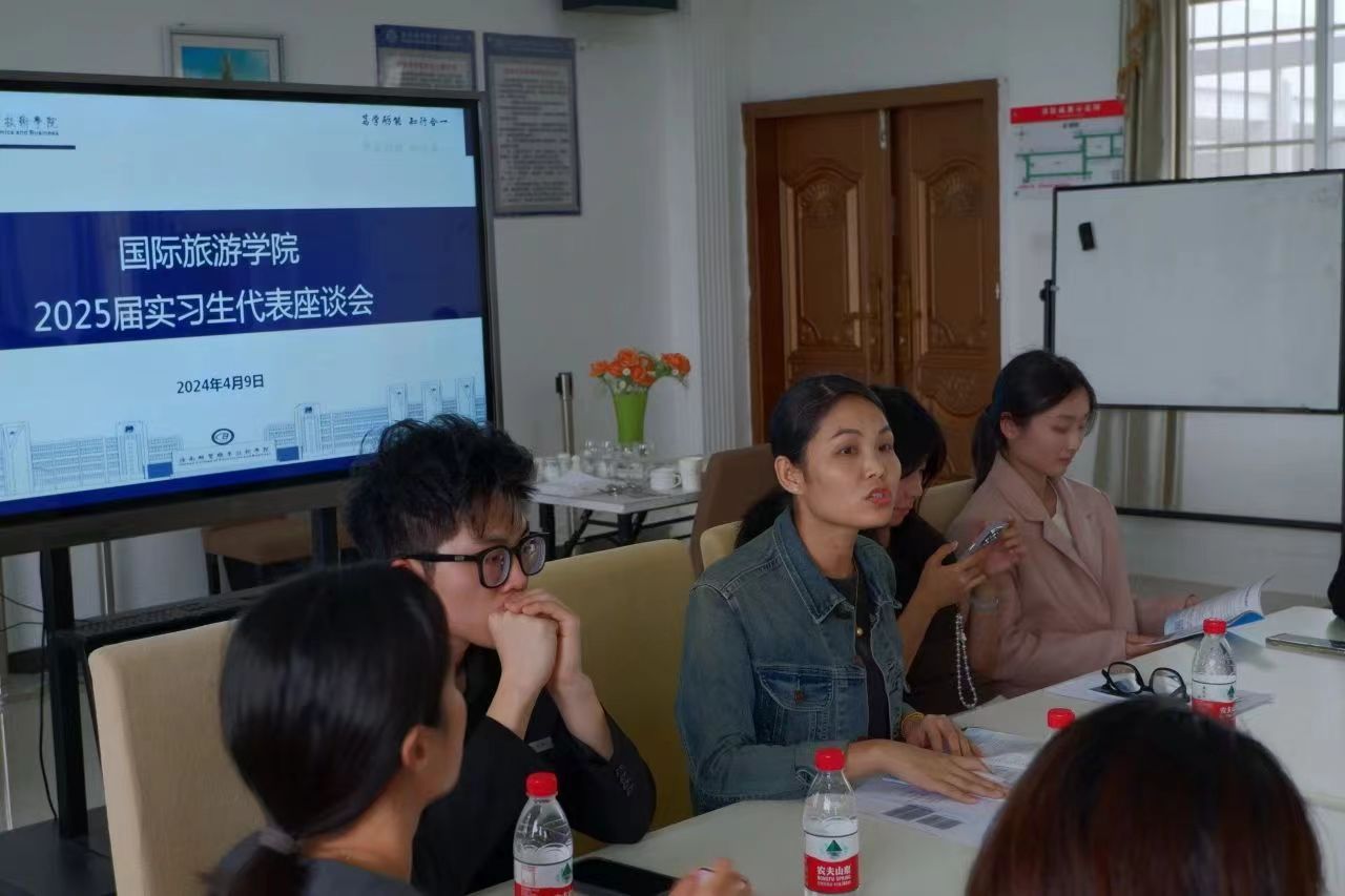 2024年4月9日下午,太阳成集团tyc122ccvip在2教509教室召开2025届实习生代表座谈会。党总支副书记刘萍男、各专业负责人、辅导员、预实习班级员工代表等共计30余人参会。会议由刘萍男主持。