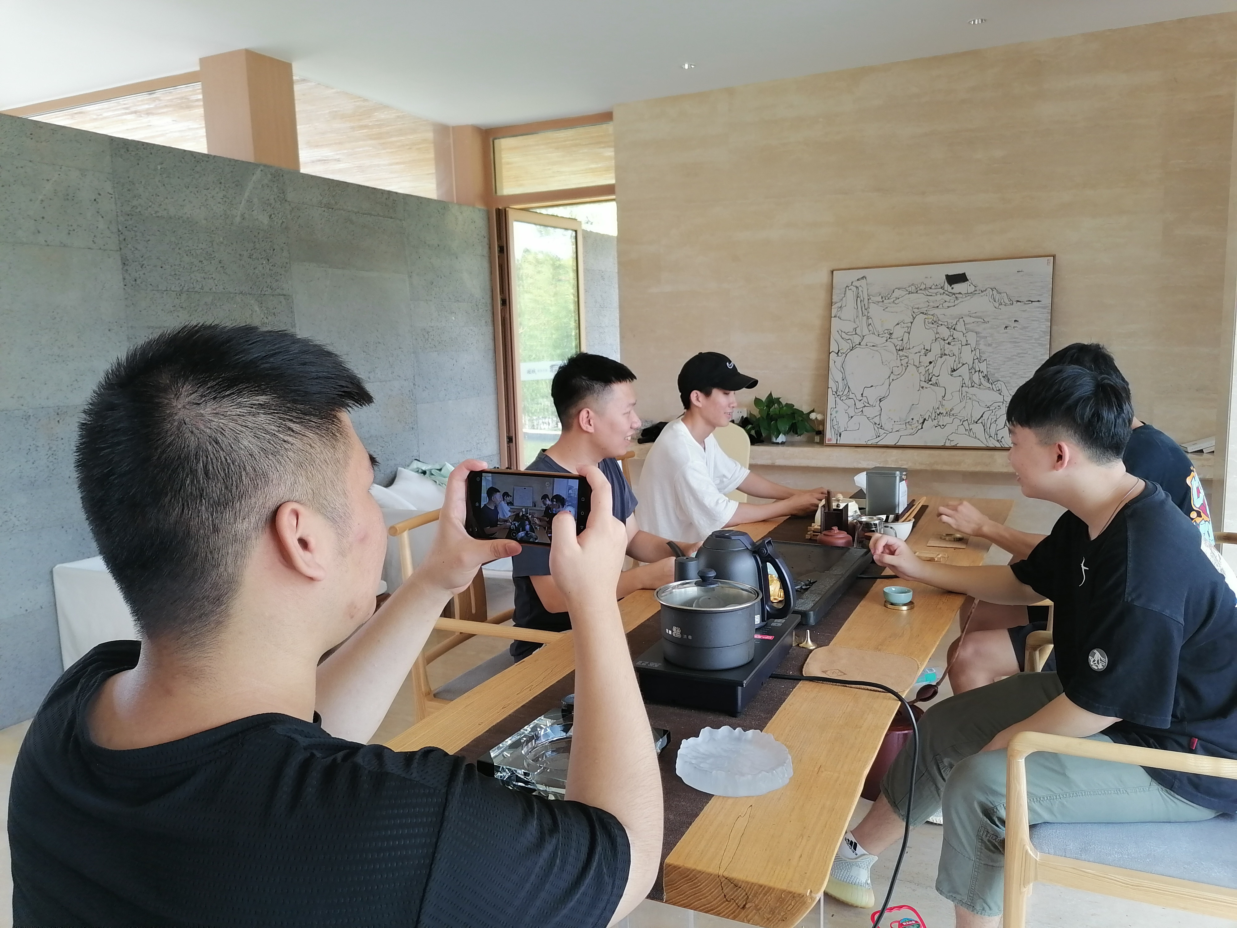 员工在海控瑶城“三杯茶院”拍摄茶文化主题短视频