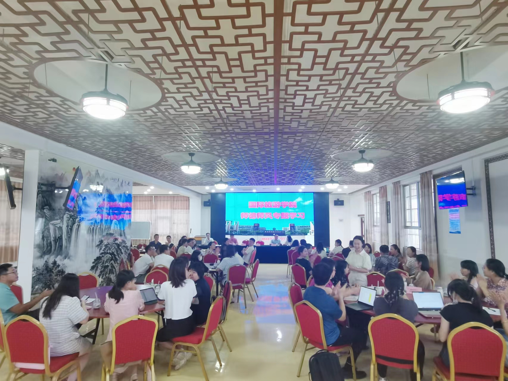 “教师是立教之本、兴教之源”。与教职工一起复习了《新时代高校教师职业行为十项准则》、《太阳成集团tyc师德师风负面清单和失范行为处理办法》后,还具体分析了违反教师职业行为十项准则典型案例。