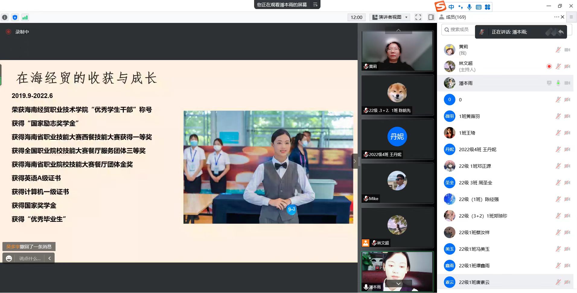 潘本雨同学作为酒店管理与数字化运营专业的优秀毕业生代表与所有2022级新生一起总结了自己过去三年高职的收获,分享了未来两年本科的学习规划。