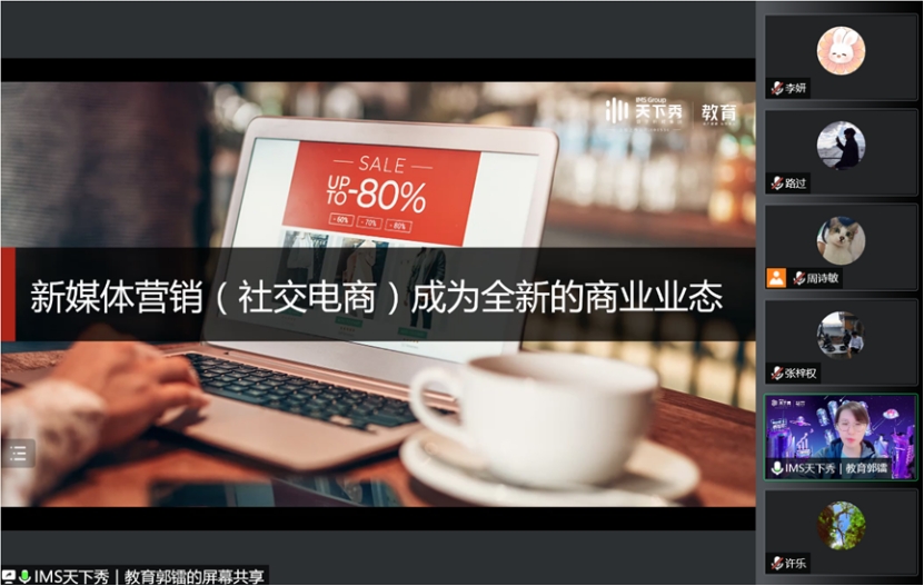 天下秀数字科技集团教育与认证事业部郭镭总经理与网络营销与直播电商专业新生讲解了数字化经济时代社交媒体发展进程及新媒体营销的前景。