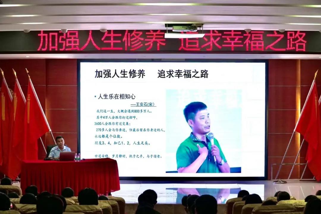 符胜书记以他自己真实的人生成长经历告诉员工,人的一生必将充满苦难,要学会将苦难当成人生最宝贵的财富;在努力学习同时并拥有一个良好的心态,充实自我精神世界,追求幸福之路。