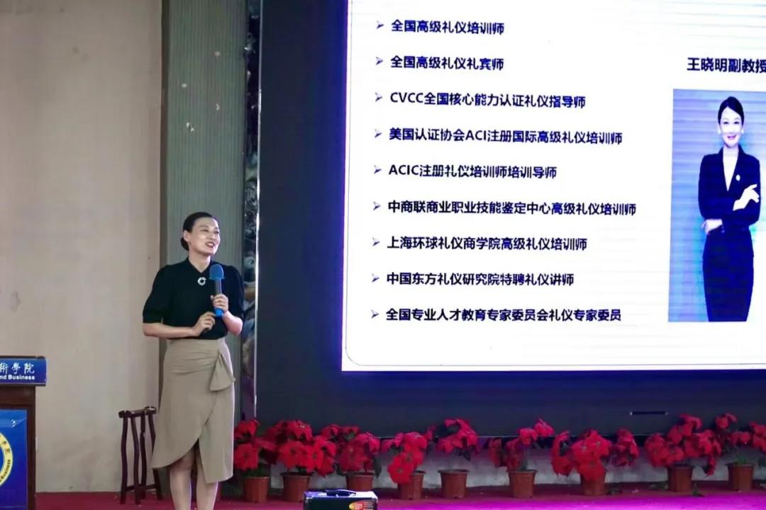 王晓明,副经理,国家高级礼仪培训、国家高级礼仪培训师、ACI国际注册礼仪培训师、CVCC全国核心能力认证礼仪指导师、高级咖啡师、导游员。主要讲授课旅游服务礼仪、形体训练、海南旅游英语、海南旅游景点讲解、个人形象设计、社交礼仪等课程。