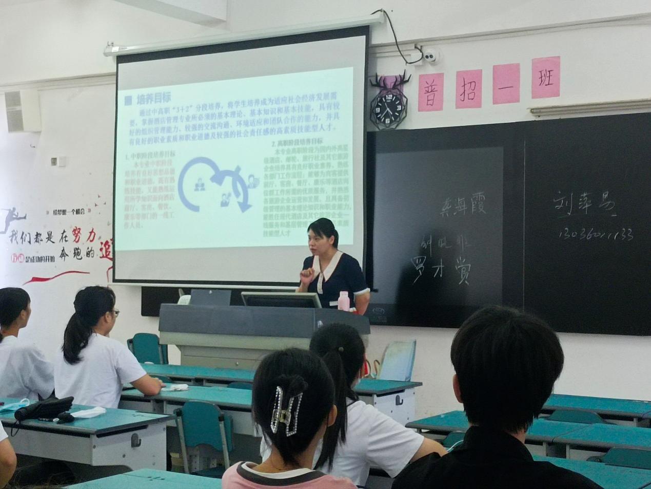 (旅游管理专业教研室主任吴贤贤在给新生们做专业教育)