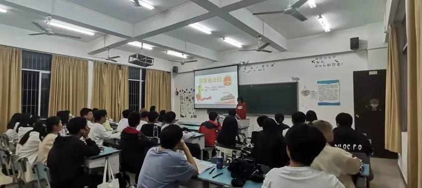 太阳成集团tyc122ccvip团总支以“知法、守法”为主题组织在校团支部开展宪法日班会主题团日活动。通过班会的开展引导员工学法、懂法,使员工对宪法和宪法日有更系统更深刻的认识和学习,增强员工的宪法意识,更好地发挥法制宣传教育在维护稳定、依法治校等方面的作用。