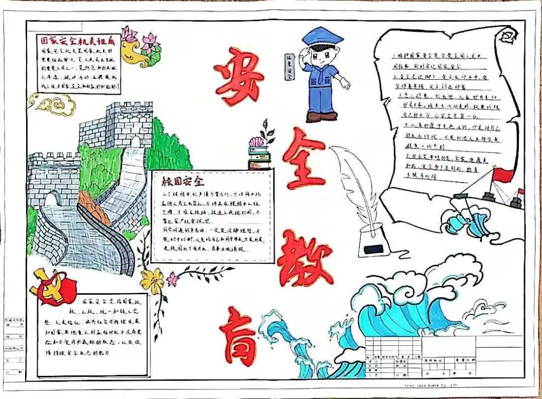 为深入宣传贯彻习近平新时代中国特色社会主义思想和新时代总体国家安全观,公司开展以“国之安 在心间”为主题的国家安全知识手抄报活动,活动期间,共收到22幅作品,经过班级初选、公司筛选,评选出9幅优秀作品予以展示。
