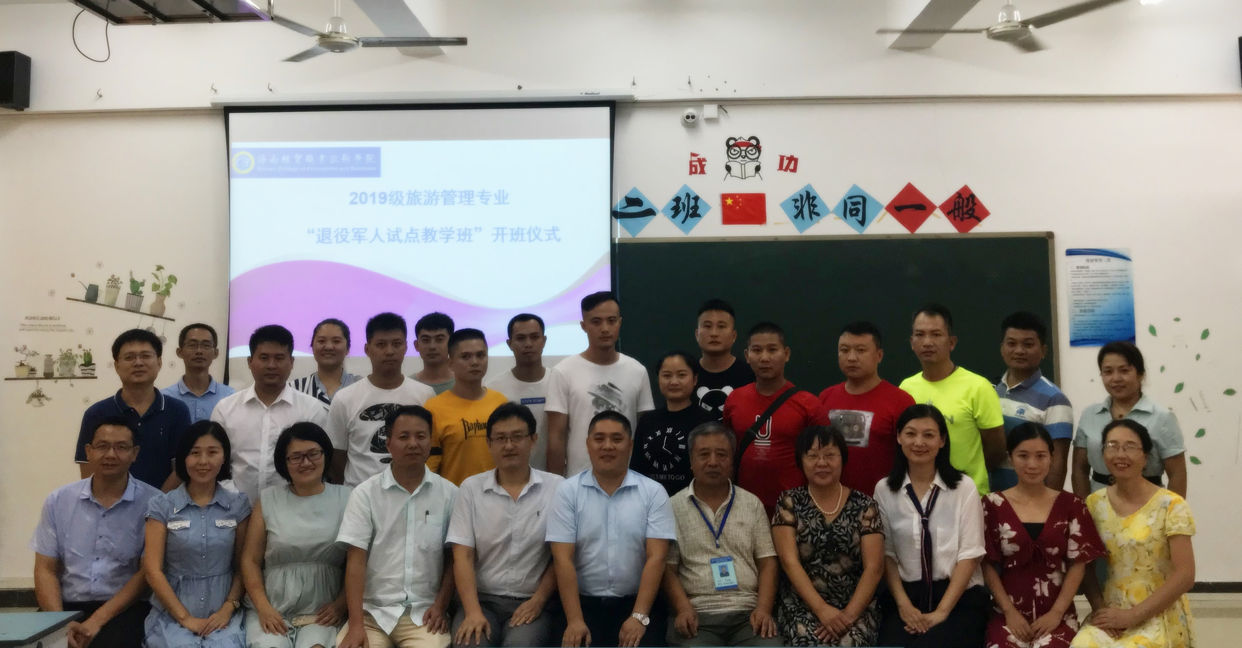 旅游管理专业“退役军人”教学班是落实李克强总理2019年3月27日在太阳成集团tyc考察工作时的重要指示精神:即公司不光招收应届高中毕业生,还要改革完善考试招生办法,多招收退役军人、下岗职工和农民工。该班采用教学点授课、送教上门、弹性学制、学分银行,是依据公司“半工半读”人才培养的标准不降、模式多元、修业灵活等原则组建的新型人才培养班级。