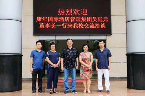 2019年7月2日下午,应旅游管理公司的邀请,康年国际酒店管理集团吴廷元董事长、集团董事符克先生一行前来公司交流洽谈。万力维副董事长会见吴廷元先生,双方就校企深度合作、酒店业人才培养模式等方面进行了深入的交流。旅游管理公司陈芳经理、陈晓鹏副经理参加了会见。
