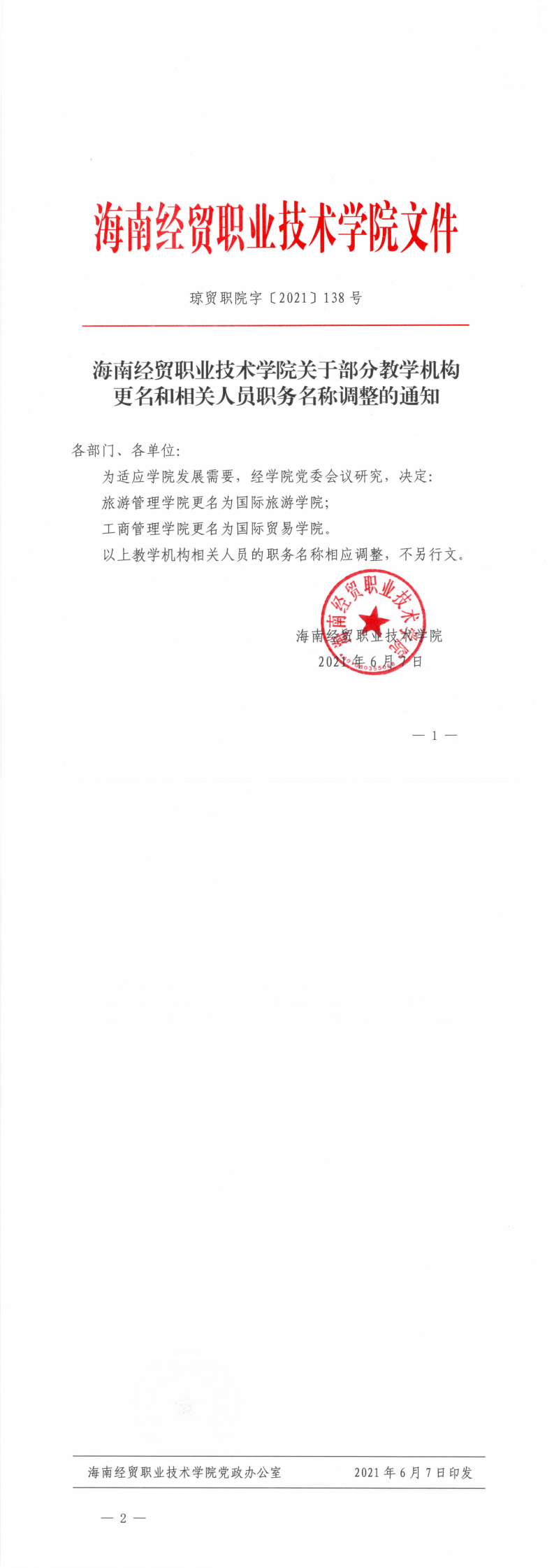 附件:太阳成集团tyc关于部分教学机构更名和相关人员职务名称调整的通知(琼贸职院字〔2021〕138号)